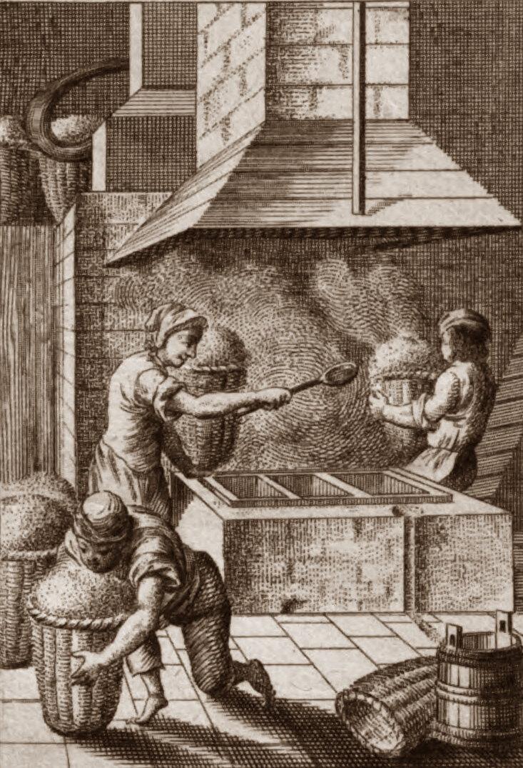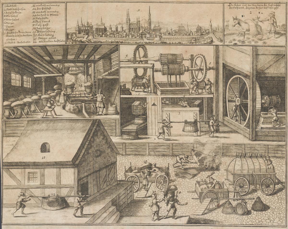 Verschüttete Sole sowie Regen- und Schmelzwasser liefen über ein System hölzerner Rinnen, den sogenannten »Spulen«, in die Saale ab. Sie verhinderten Wasserlachen auf dem tiefliegenden Gelände, welche die Brunnen verunreinigt hätten. Die Spulzieher befreiten die Rinnen von Schmutz und Schlamm, damit das Wasser jederzeit schnell abfließen konnte.